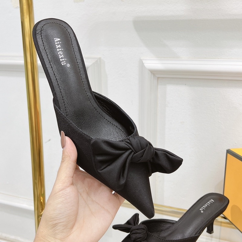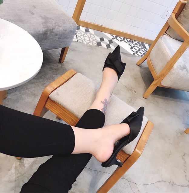 Giày Dép Nữ > Giày đế bằng > Giày sục & Giày búp bê || Sục nơ lụa gót nhú fullbox hàng quảng châu cao cấp