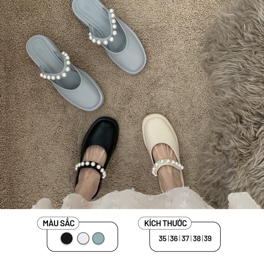 Sục Nữ Ulzzang Vintage, Dép Sục Da PU Quai Đính Ngọc Mũi Vuông Tròn Đế Bằng Phong Cách Hàn Quốc - Iclassy_shoes