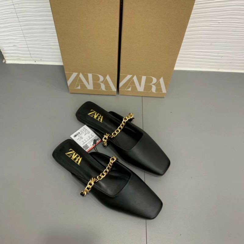 Giày Dép Nữ > Giày đế bằng > Giày sục & Giày búp bê || Sục Zaraa quai xích vàng da lì trắng kem-đen