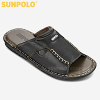 Dép Nam Quai Ngang Da Bò Cao Cấp SUNPOLO SUA12D - Đen (Size