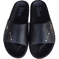 Dép nam quai ngang 1 bản da bò thật màu đen Trường Hải mặt đúc chịu nước QN150