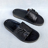 Dép nam quai ngang da cá sấu đế cao 3cm 2 loại móng, trơn 2 màu nâu đen DCS200