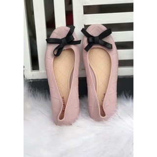 GIÀY BÚP BÊ NỮ ĐI MƯA NHỰA HỒNG NƠ NHÍ ĐEN