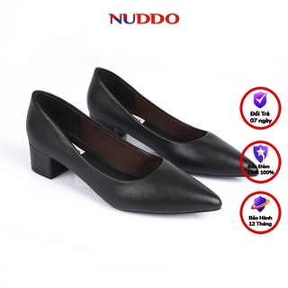 Giày cao gót nữ 3 phân mũi nhọn gót vuông da lì trơn mềm công sở cao cấp NUDDO_N207