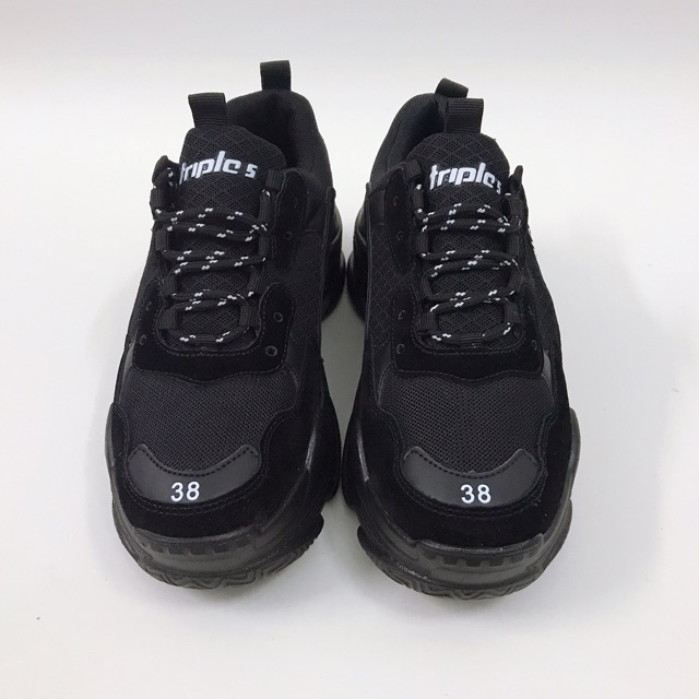 Giới thiệu [TẶNG HỘP + LỌ TẨY hoặc TẤT] Giày thể thao nam nữ ulzzang, sneaker 3len trip đen full, size 36 đến 43. .