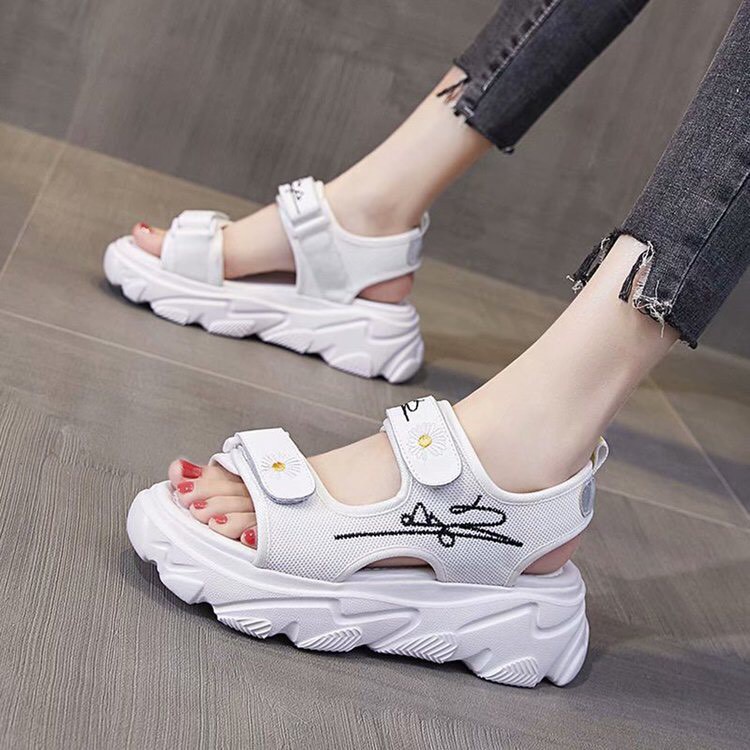 Giày Dép Nữ > Xăng-đan và dép > Xăng-đan đế bằng || (VIDEO) Sandal nữ 2 quai da phối lưới thêu hoa cúc kèm chữ ký