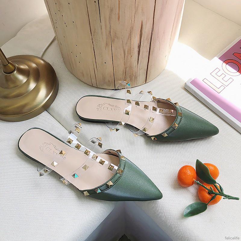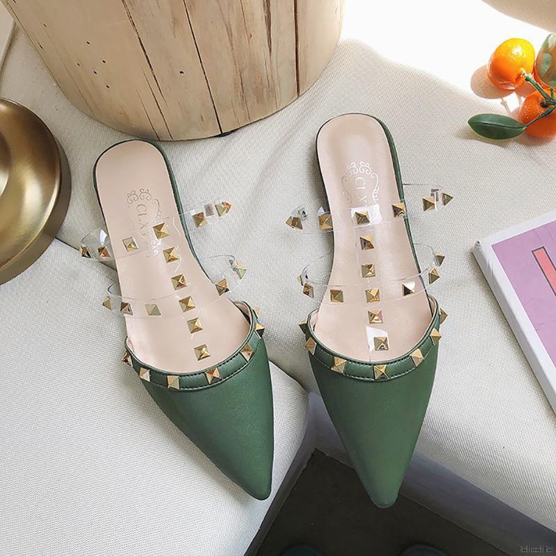 Giới thiệu Xăng đan Mũi Nhọn Đính Đinh Tán Thời Trang Mùa Thu 3 Màu Lựa Chọn